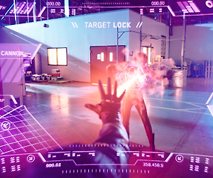 글래스 디스플레이에 웨폰 시스템이 작동한 정보가 표현된다.